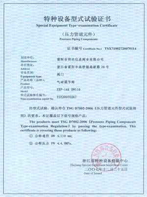 球阀调节阀型式试验证书